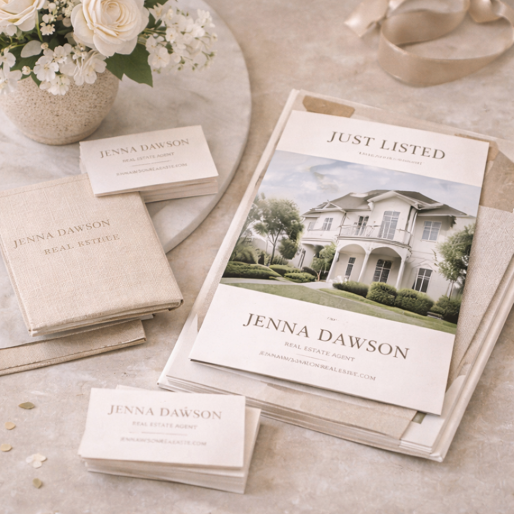 Elevate your real estate business with custom branding services. Your online presence is just the start. We provide a complete suite of tailored design solutions for realtors, including sophisticated logo creation, professional business card design, and polished, informative brochures, ensuring every piece of your marketing collateral presents a cohesive and high-end image to your clients.